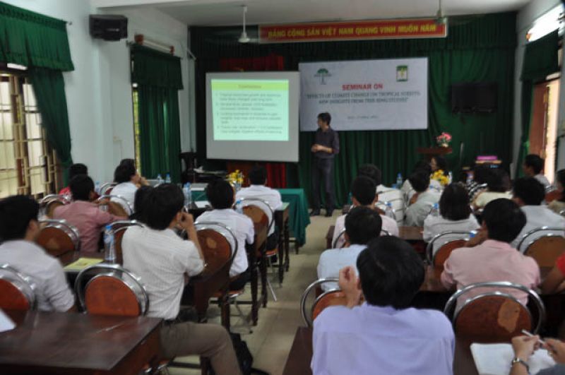 On 13 April 2012, TBI Viet Nam cooperated with Hue University of Agriculture and Rural Development (HUAF) to organize a guest lecture on the “ Effects of climate change on tropical forests: new insights from tree-ring studies,” for lecturers and students of the forestry faculty and staff members of HUAF.